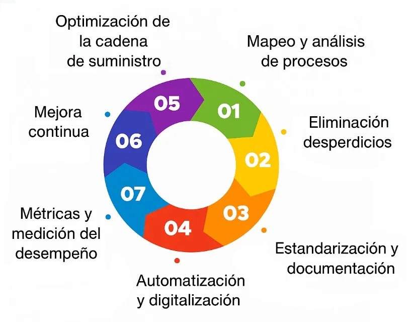 Nuestro enfoque se centra en la simplificación y reconfiguración de flujos, eliminando duplicidades y rediseñando la cadena de valor para que cada paso contribuya de forma directa al cliente y al negocio.