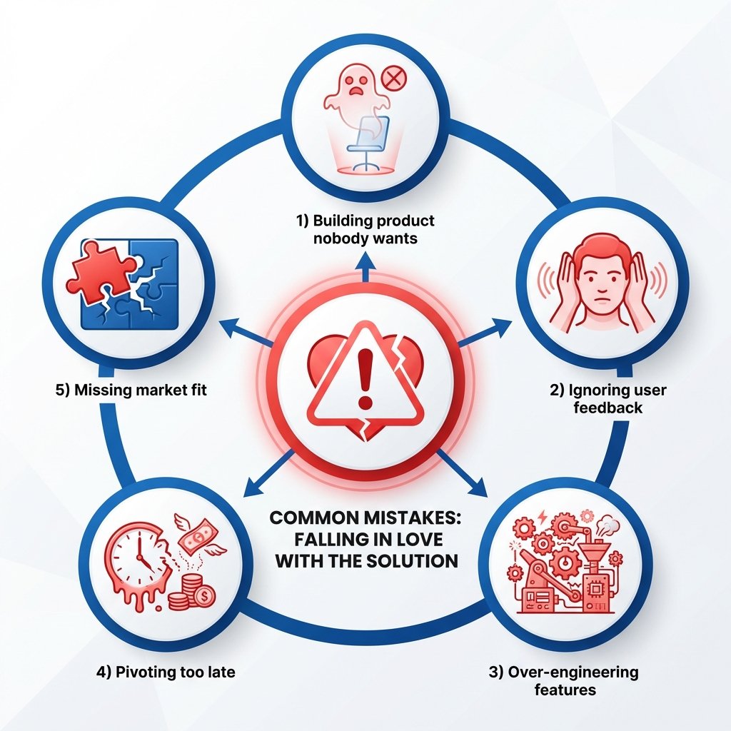 - Pivotar demasiado tarde: Cuando finalmente aceptas que tu solución no funciona, ya gastaste $200,000 y 18 meses. Si hubieras validado el problema primero con conversaciones estructuradas, habrías descubierto el desajuste en 2 semanas y $0.