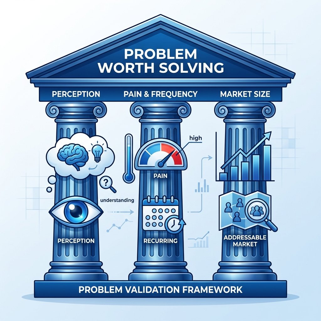 - Descarta problemas que no validan en los 3 pilares (percepción, dolor+frecuencia, tamaño mercado). Sé brutal. Es mejor pivotar ahora que después de codificar 6 meses.