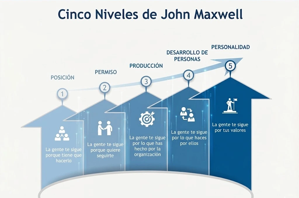 A partir de aquí, Maxwell define cinco niveles de liderazgo: