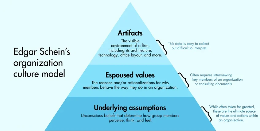 Schein define una jerarquía de influencia que opera desde lo más profundo hasta lo más visible: